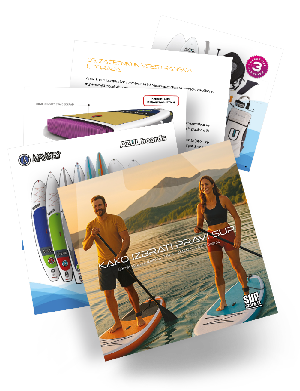 ✅ Preizkusi SUP desko pred nakupom – brezplačno! Ne veš, katera SUP deska ti najbolj ustreza? Na testnih dnevih lahko brezplačno preizkusiš vrhunske napihljive SUP deske Amanzi in AZULboards, ter poiščeš model, ki ti najbolj odgovarja – glede na izkušnje, slog veslanja in želje.